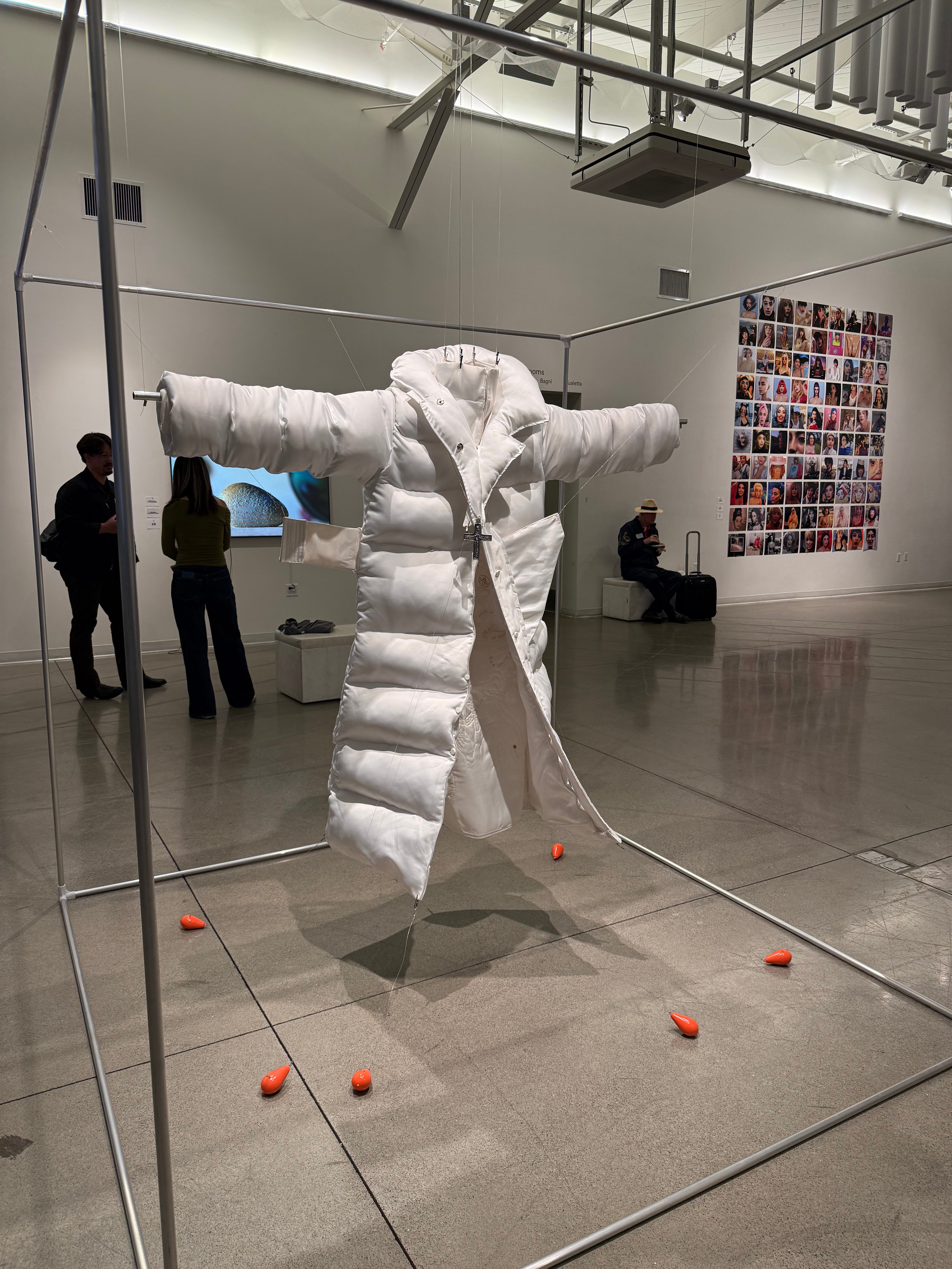 On Tuesday evening I visited the REFRESH 2026 “Algorithmic Entanglements” exhibit hosted at Swissnex on SF Embarcadero’s Pier 17. At the heart of a lofty warehouse room is a jacket designed by an artist inspired by the first AI viral image of the pope.